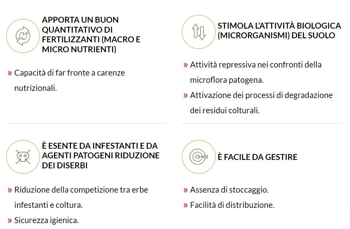 L'uso di questi ammendanti ha l'obiettivo di arricchire il suolo con nutrienti essenziali, migliorare la capacità di ritenzione dell'acqua, e promuovere l'attività biologica nel terreno, creando un habitat più sano per le piante. Inoltre, l'ammendante aiuta a bilanciare il pH del suolo, a liberare elementi nutritivi bloccati e a stimolare la crescita delle radici, risultando in una migliore resa delle colture.